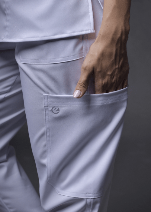 El Pantalón B104D revoluciona la vestimenta médica con su moderno diseño tipo Jogger. De la Línea MÉDICA, esta prenda está diseñada para el máximo confort y estilo, sin sacrificar la bioseguridad esencial. Su composición de 96% Poliéster y 4% Lycra garantiza elasticidad (Stretch) y un movimiento sin restricciones.